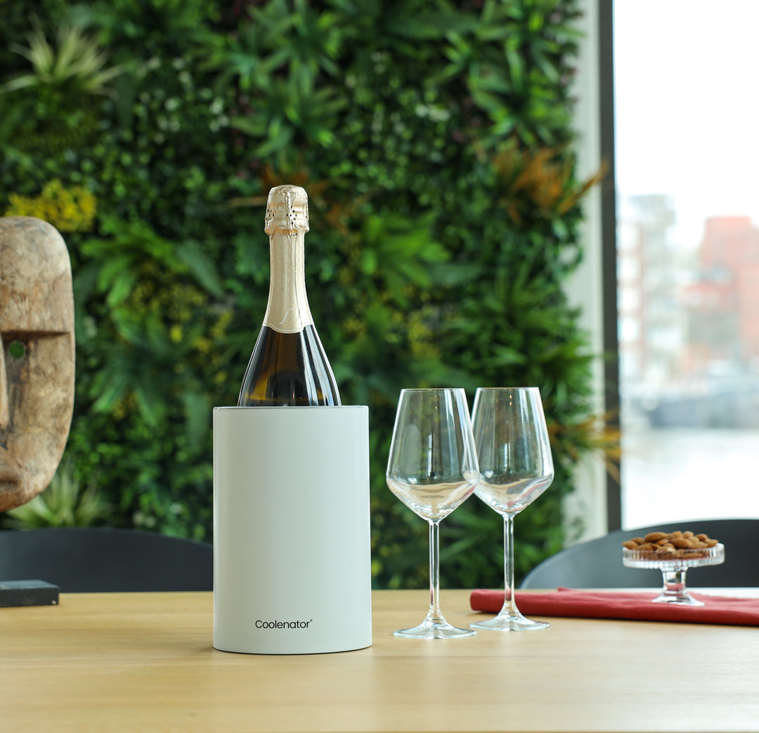 Coolenator ist nicht nur ein Weinkühler – es ist eine clevere und stilvolle Art, deine Getränke kalt zu halten – ganz ohne Eis, Tropfen oder Aufwand.