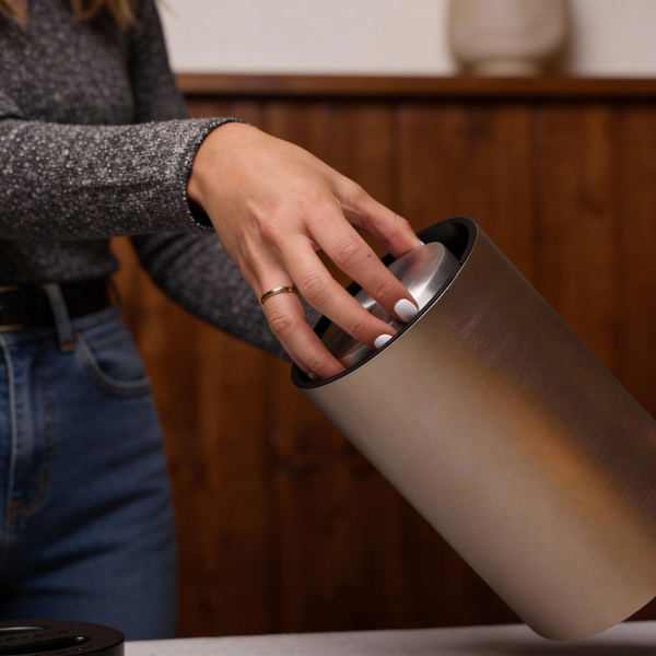 Keeps wine cold for hours with our reusable freezer bullet, no ice needed and no condensation on the table.